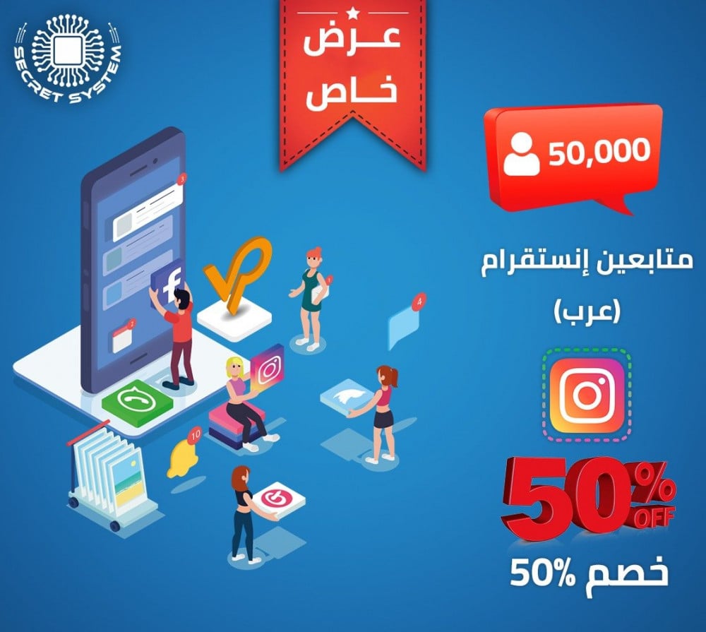 عرض خاص 50k متابع خمسون الف متابع عرب حقيقي خصم 50%